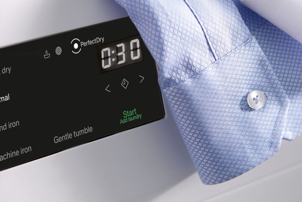 What’s great about our PerfectDry feature is that your laundry dries perfectly – even if the water contains significant amounts of calcium. PerfectDry takes the current calcium content of water into account and precisely adjusts the drying process, ensuring that the selected drying level is always achieved.