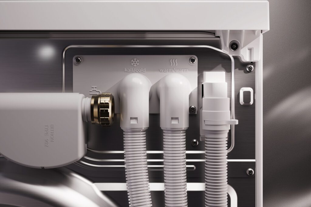 Some Miele washing machines feature an additional connection for hot water, well water and rain water. With the hot water connection, you can save energy if domestic water is heated using solar technology, for example. You can also use well water or rain water. This saves valuable drinking water – which is good for the environment and your wallet.